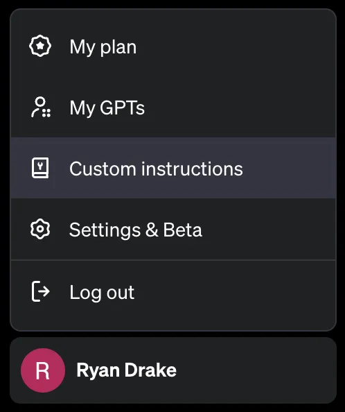 Custom instructions lets you feed information about yourself and your business for ChatGPT to take into consideration when responding to prompts. Your instructions will be added to new conversations going forward.